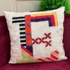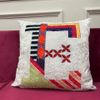 %100 Kadife E Harfli Desenli Kırlent Yastık Kılıfı (Beyaz)