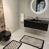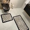 2 li Geometrik Desen 60x100 - 60x50 Lateks Taban Banyo Paspas - BEJ-SİYAH