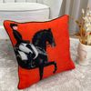 At Desenli Biyeli Kırlent Kılıfı 45x45 - TURUNCU