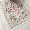 BEJ Renk Çiçek Desenli Vintage Lateks Taban Halı