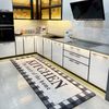 Bej Siyah Kitchen Lateks Deri Taban Mutfak Halısı