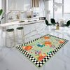 Çiçekli Damalı Lateks Taban Saçaksız Yolluk Mutfak Halısı - YEŞİL