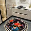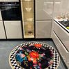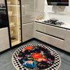 Çiçekli Damalı Yuvarlak Lateks Taban Saçaksız Mutfak Halısı