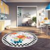 Çiçekli Damalı Yuvarlak Lateks Taban Saçaksız Mutfak Halısı - GRİ