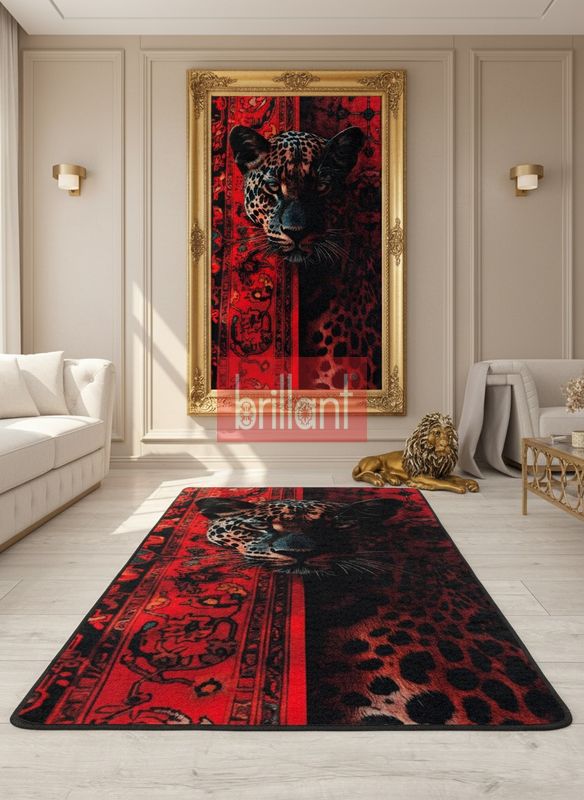 Çita Desenli Kırmızı Dekoratif Lateks Halı