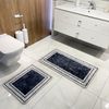 Çizgili Desenli 2'li Lateks Deri Taban Banyo Paspas Takımı (60X100 - 60X50) Lacivert Gri