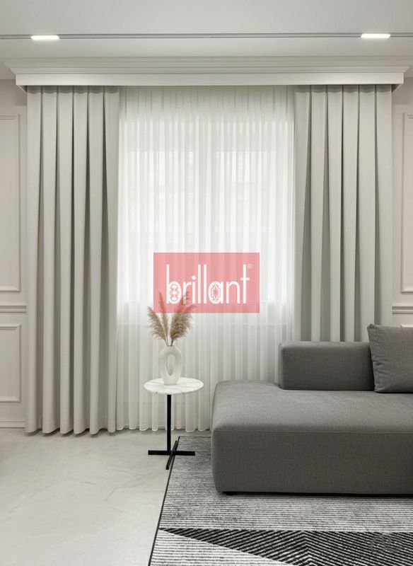 Hazır ölçülü Brillant fon perdelerimizin en ölçüleri 70 cm, 80 cm, 90 cm ve 100 cm olarak sunulmaktadır.