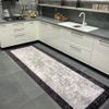 Geometrik Çizgili Lateks Deri Taban SAÇAKSIZ Mutfak Halısı - GRİ - SİYAH
