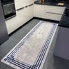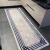 Geometrik Geçişli Şönil Görünüm Lateks Kaymaz Taban Leke Tutmaz SAÇAKSIZ Halı - LACİVERT/GRİ