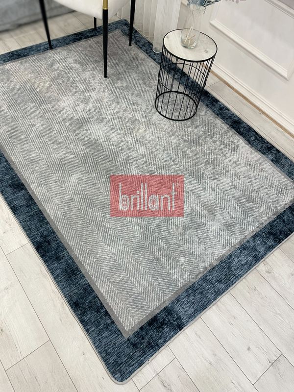 GRİ-KOYU MAVİ Jüt Sisal Görünüm Bordürlü Kaymaz Taban Yolluk Mutfak Halı