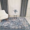 Gri Mavi Renk Geometrik Desen Kaymaz Taban Yolluk Halı