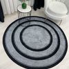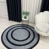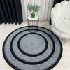 GRİ-SİYAH Hasır Jüt Sisal Bordürlü Görünümlü Yuvarlak Dekoratif Halı
