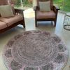 Hasır Jüt Görünümlü Yuvarlak 3D Renkli Balkon ve Teras Lateks Deri Taban Halı