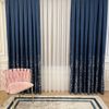 Jakar Zemin Varaklı Desen 1/3 SIK Pile Fon Perde - Lacivert - Gümüş Varaklı