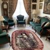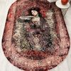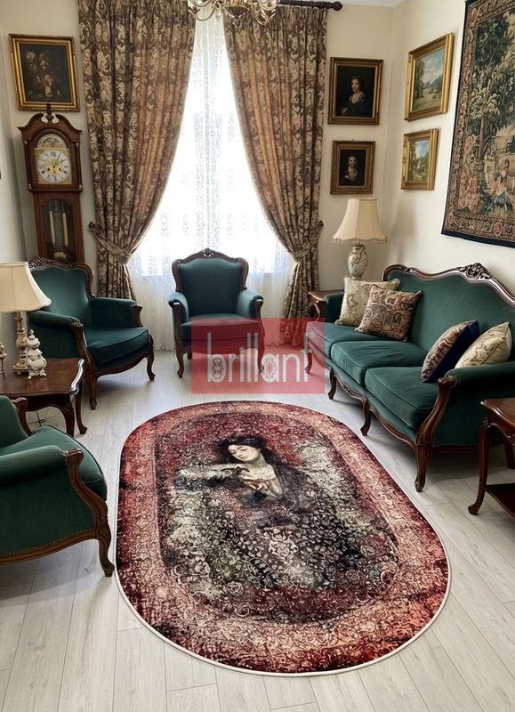 Kahve-Kırmızı Eskitme Vintage Etnik Desenli Oval Lateks Taban Halı