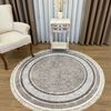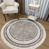 Kahve Vizon Daire Bordürlü Lateks Taban Saçaklı Halı