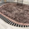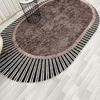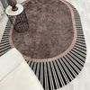 KAHVERENGİ Renk Çizgili Oval Kaymaz Taban Halı