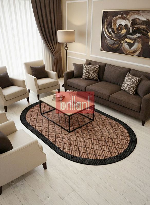 KAHVERENGİ-SİYAH Jüt Sisal Görünüm Bordürlü Kaymaz Taban Yolluk Halı