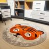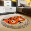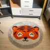 Kaplan Figürlü Yuvarlak Yıkanabilir Çocuk Bebek Halısı - Gri