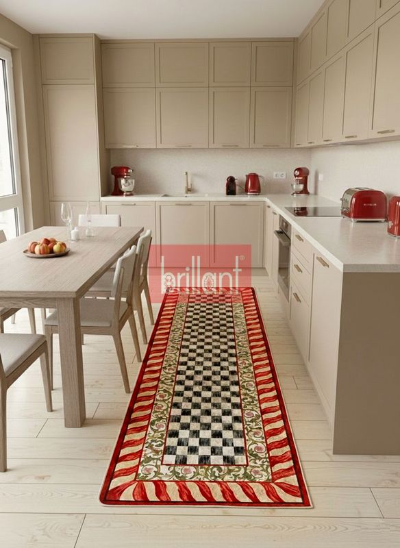 Kırmızı Renk- Mackenzie Stili Damalı Mutfak Antre Yolluk Halı