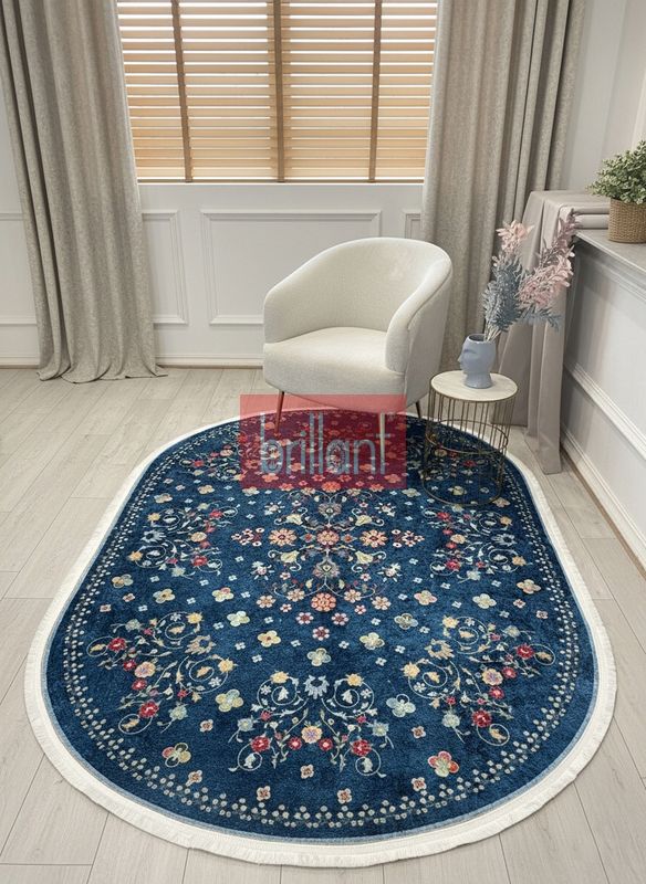 LACİVERT Blue Floral Vintage Lateks Taban Halı
