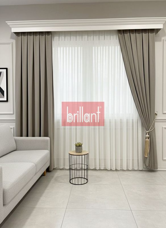 Hazır ölçülü Brillant fon perdelerimizin en ölçüleri 70 cm, 80 cm, 90 cm ve 100 cm olarak sunulmaktadır.