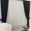 Modern Şantuklu Bantlı 1/3 SIK Pile - Ekru/Gri Tül Perde