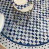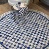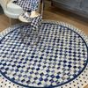 Robert Mavi Dama Desen Saçaksız Yuvarlak Halı - Mavi