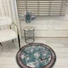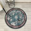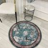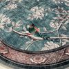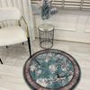 Soft Mavi Kuş Desenli Bordürlü Kaydırmaz Yuvarlak Halı