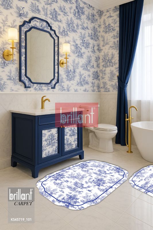Toile de Jouy Temalı Lateks Taban Banyo Paspası (80X120)