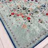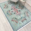 Yeşil Renk Çiçek Desenli Vintage Lateks Taban Halı